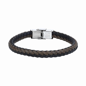 Bracelet cuir réglableTresse bicolor noir/kakiFait main en France