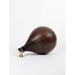 Cette poire de vitesse en cuir est munie d'une attache en laiton pour pratiquer l'entraînement à la boxe. Elle est fabriquée dans l'atelier artisanal de John Woodbridge à base de panneaux de cuir cousus manuellement. Effet boxe rétro garanti dans une décoration élégante et stylée !